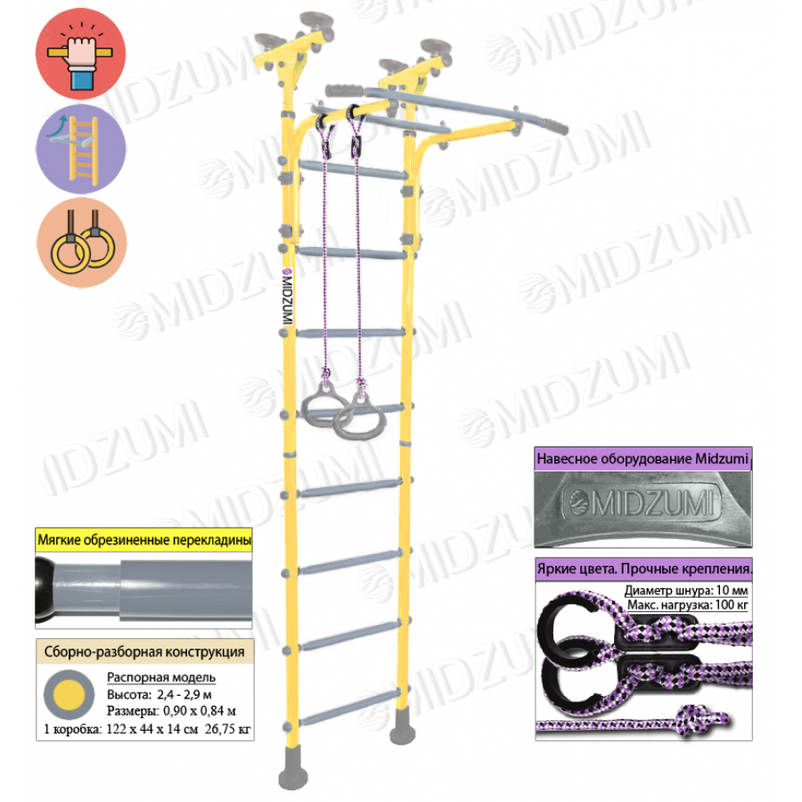 — Длина захвата турника: 90 см